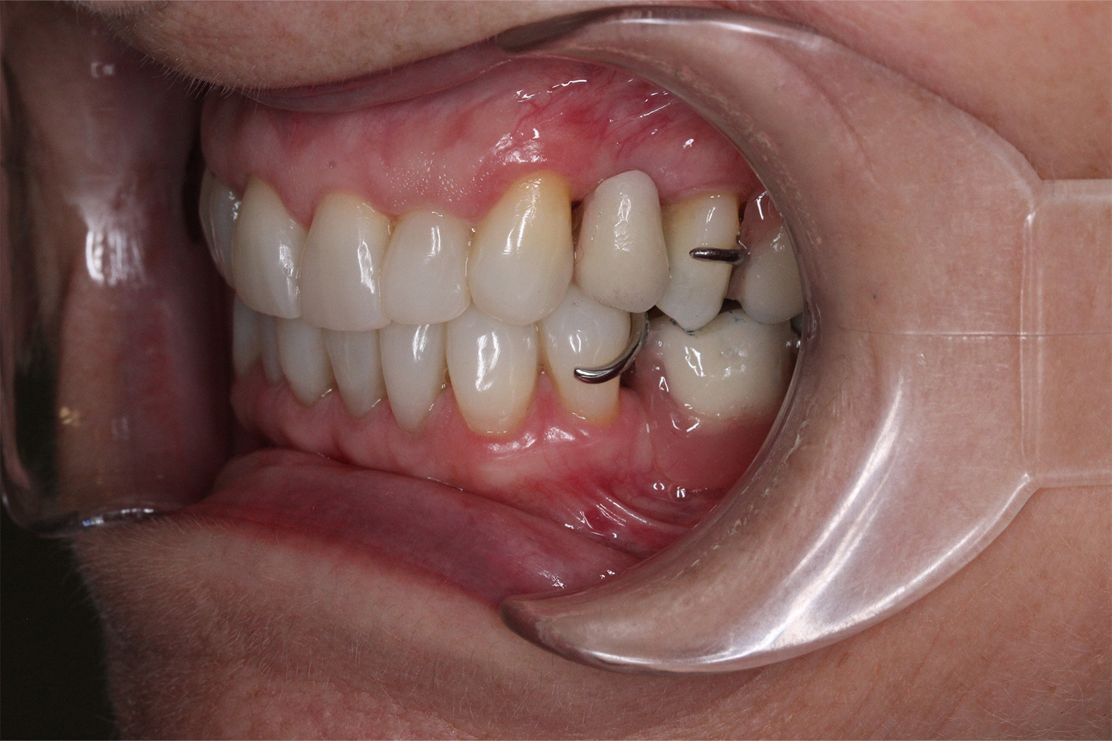 Se colocaron coronas sobre los dientes 11, 12, 21 y 22, fundamentales en la zona estética, logrando un aspecto natural y perfectamente integrado. Completamos la rehabilitación con inyección de composite en los incisivos inferiores, mejorando su alineación y volumen, y colocamos una prótesis esquelética superior e inferior, que devolvió a Alfonsa la capacidad de masticar con comodidad y confianza.